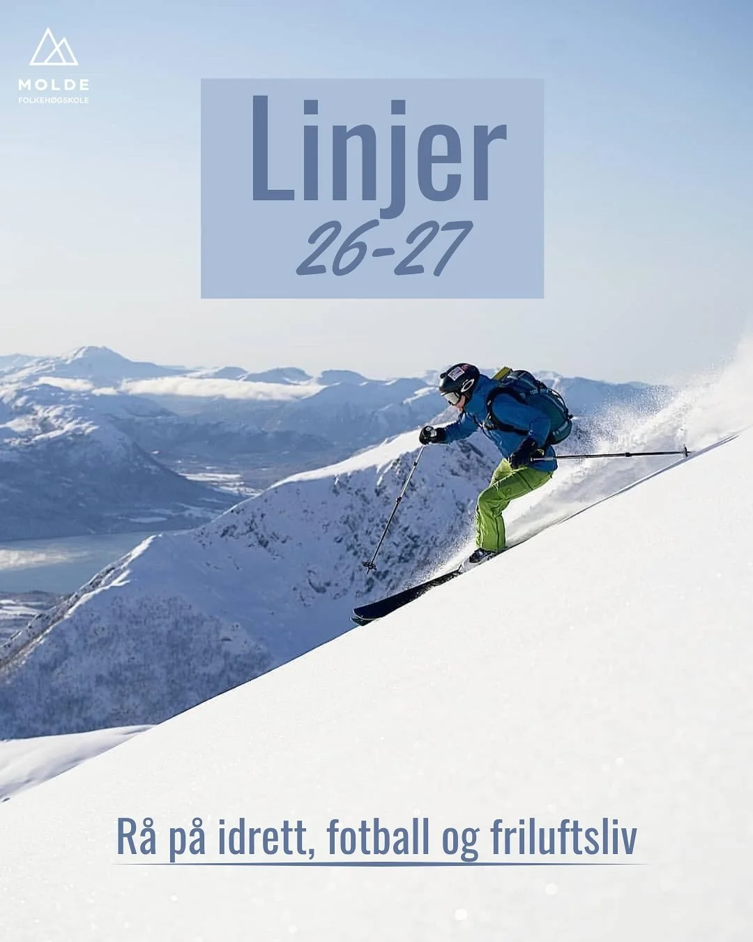 Vi elsker friluftsliv og idrett. Gjør du det også? Tilbring ett år i idrettsbyen Molde sammen med oss, og oppdag fjell og fjord. Møt venner for livet. Gjør neste år til ditt livs beste!